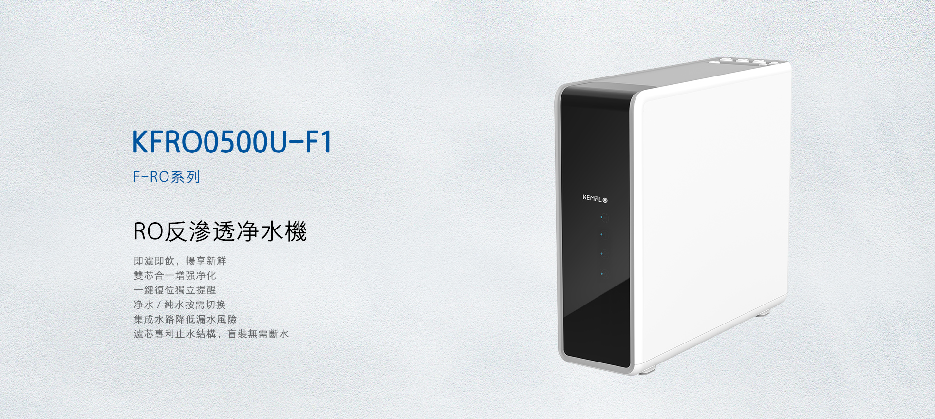 - KEMFLO牌KFRO0500U-F1型反滲透凈水機凈水產水率符合GB 34914-2021《凈水機水效限定值及水效等級》標準的1級要求