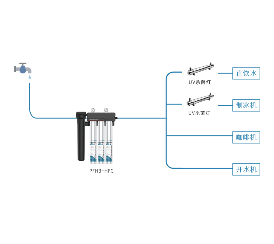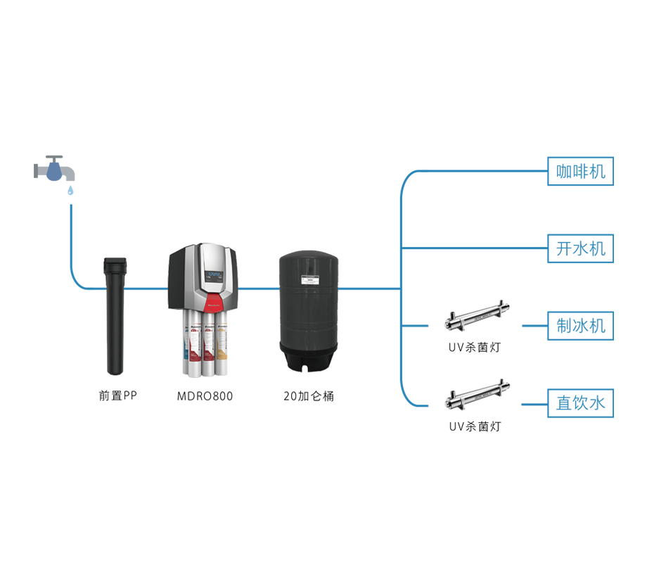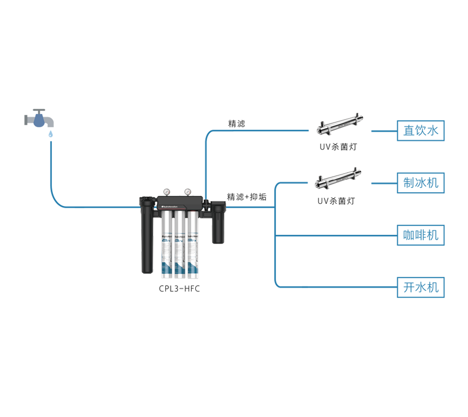過濾功能:去除泥沙雜質(zhì),去除水垢,改善口感,調(diào)整TDS值,除菌